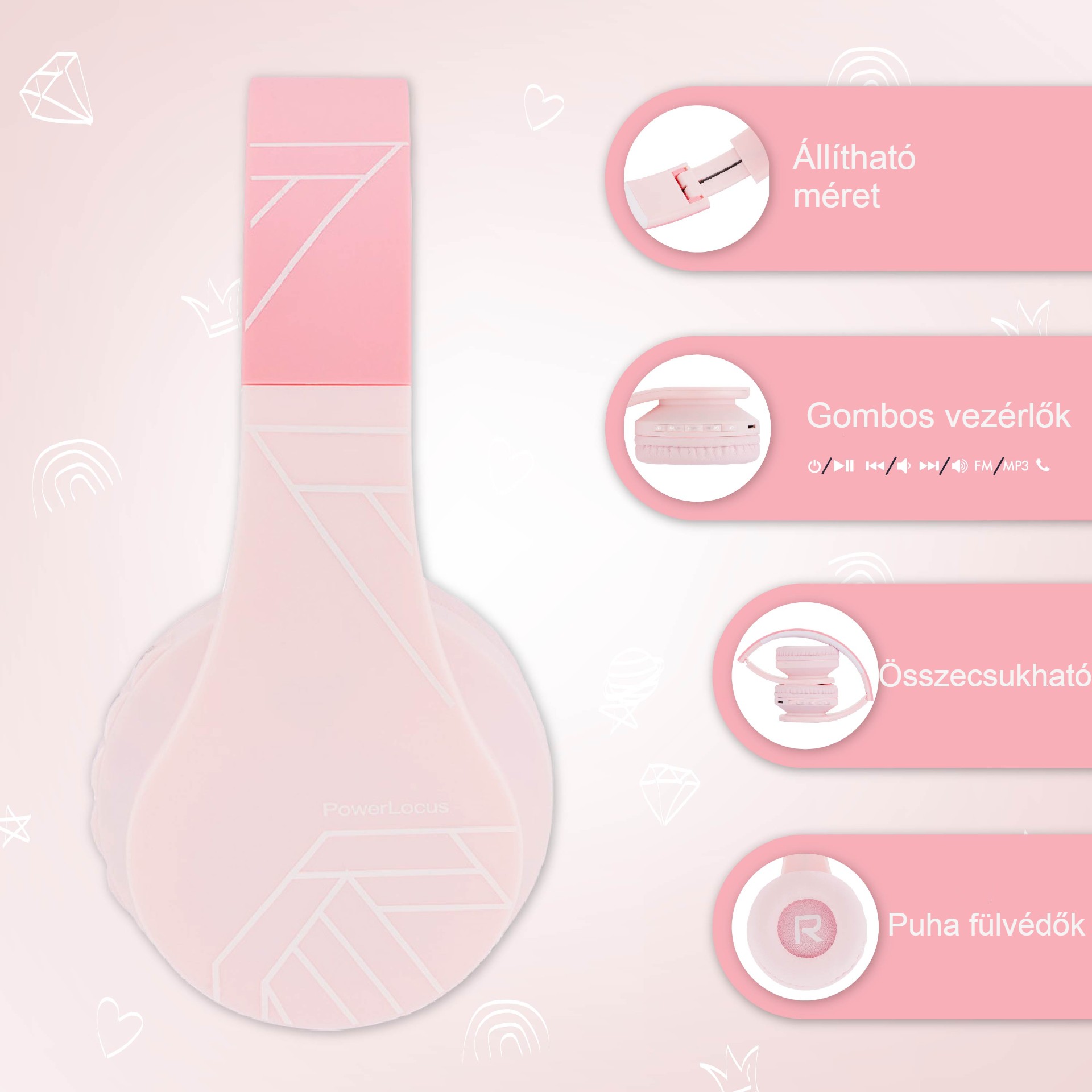 PowerLocus P1 Bluetooth fejhallgató gyerekeknek – rózsaszín